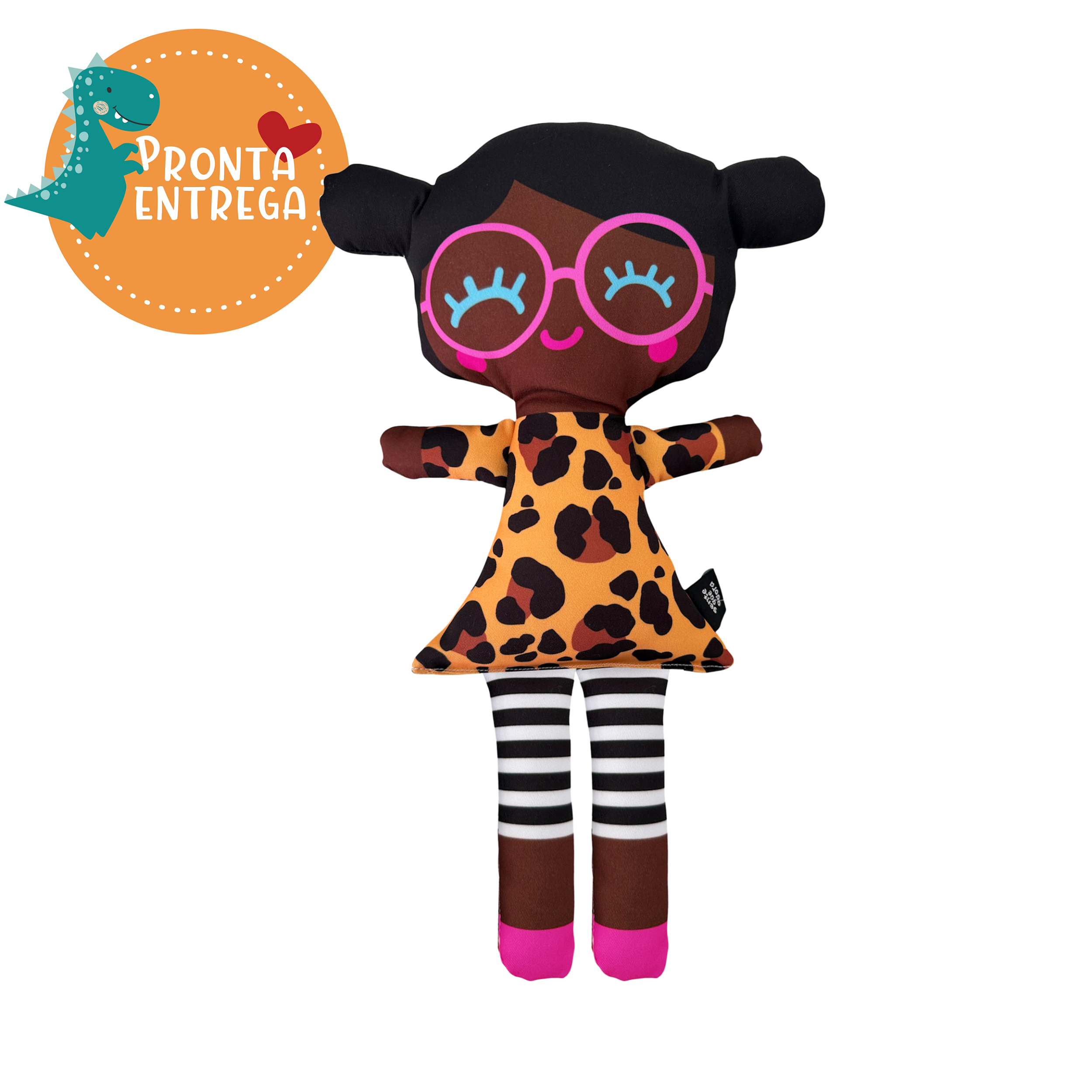 Boneca de Pano Inclusiva PRETA NANI DE ÓCULOS - G