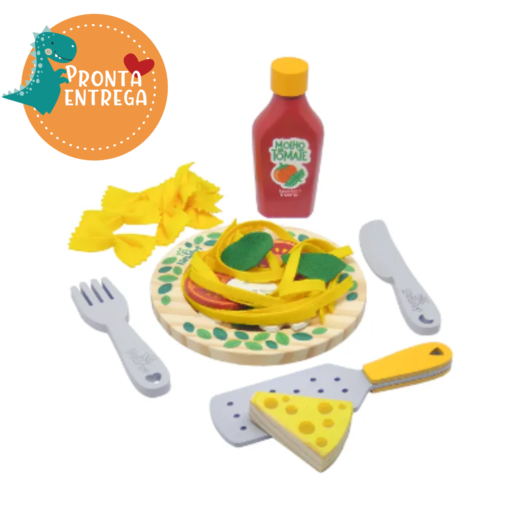Brinquedo de madeira Comidinha - Kit MACARRONADA TALHARIM E GRAVATINHA VERDE 🍝🍽️