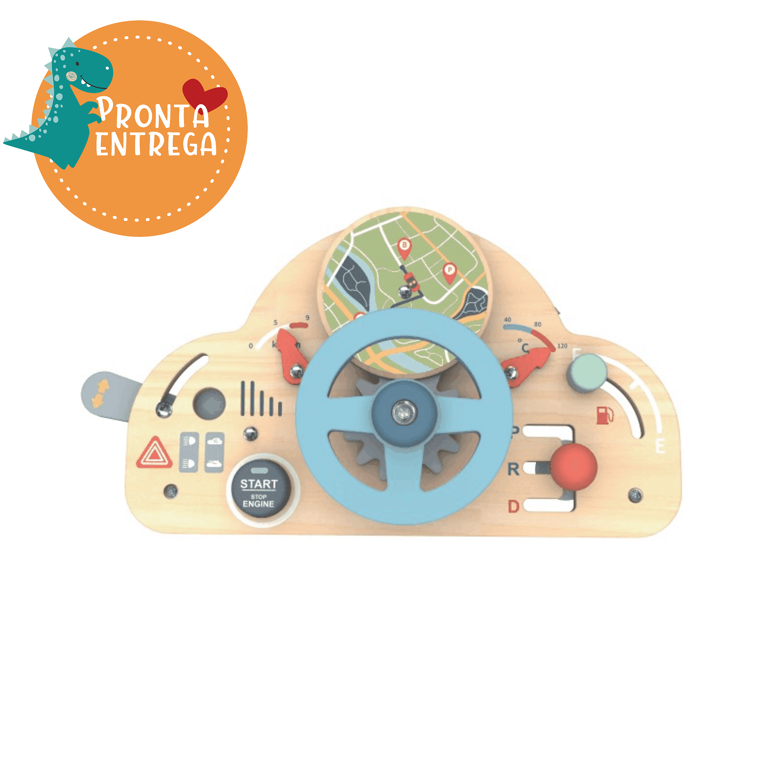 Equipado com volante, câmbio interativo, botões sensoriais e mapa de navegação, ele substitui telas por uma experiência tátil rica, estimulando a coordenação motora fina e o raciocínio lógico. 🏎️🏎️🏎️