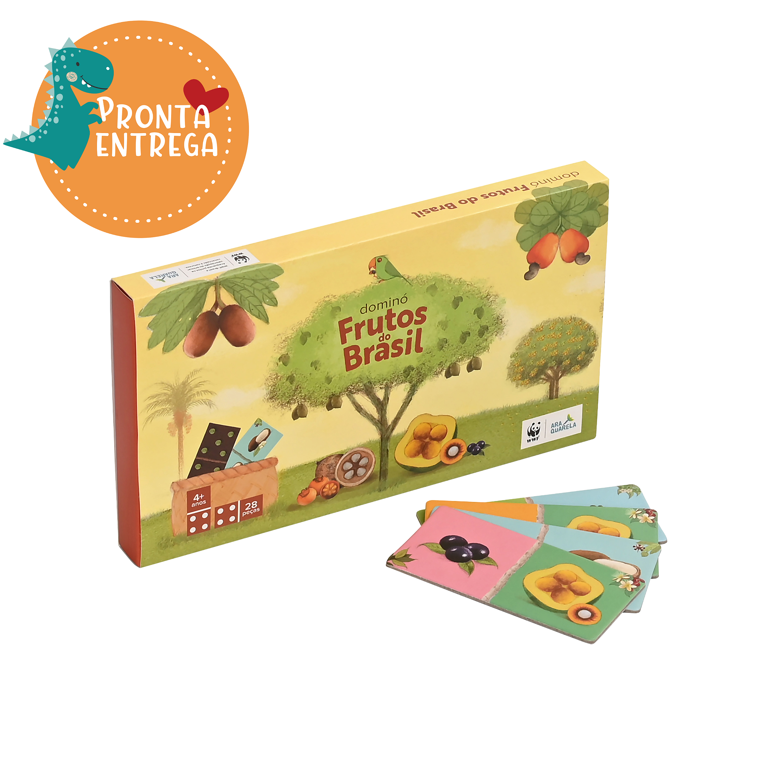 Produzido em papel certificado (FSC) e papel cartão reciclado, garantindo resistência e sustentabilidade e pintado com ilustrações delicadas do frutos nacionais, este dominó transforma cada partida em uma experiência lúdica e colorida.